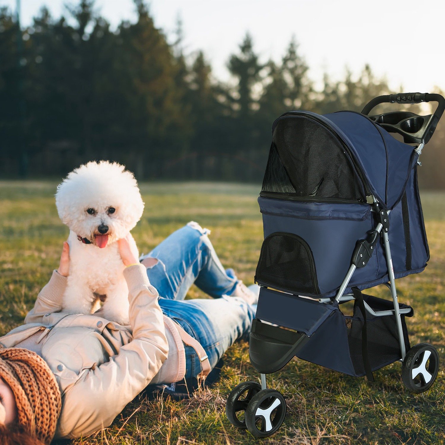 3 Wheels Pet Stroller Foldable Carrier Strolling Cart Travel Jogger Pet Stroller with Removable Liner Storage Basket for Dog Cat
