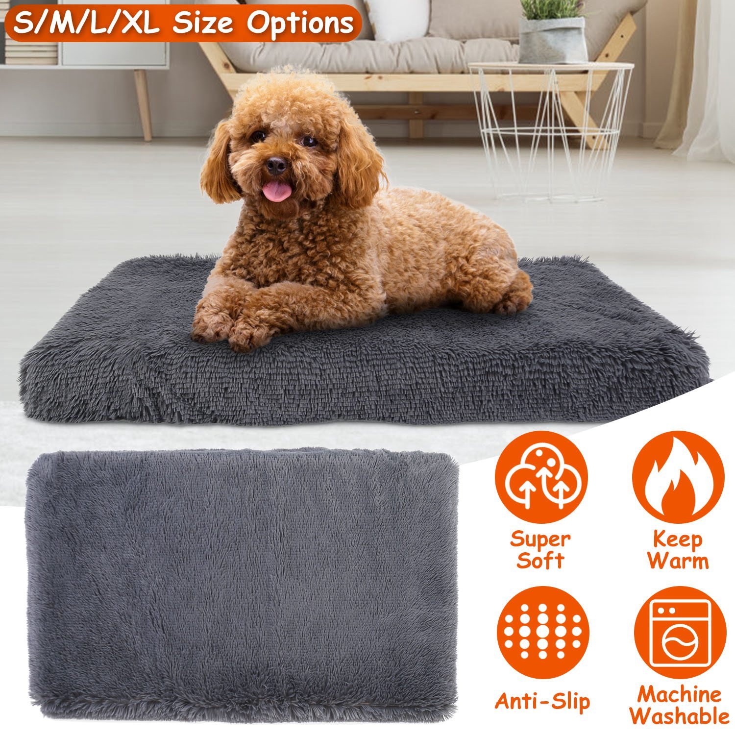 Made from high-grade long plush in the surface and filled with egg crate sponge inside, our dog bed is super soft, odorless and cozy. Adopting premium oxford fabric materials with plastic dots on the bottom, can effectively prevent the bed from slipping and ensure durability. Besides, the cover can be removed and is machine washable, which is easy to clean. S/M/L/XL Sizes are provided for your dogs, meeting your different needs. It's an ideal gift for your beloved pets to keep warm and comfortable in this cold winter.