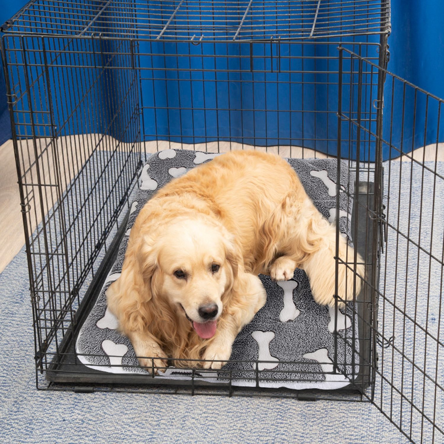 Home > Dog Bed Mat Comfortable Flannel Dog Crate Pad Reversible Cushion Carpet Machine Washable Pet Bed Liner with Bone Patterns Dual-Side Usage for M/L/XL D